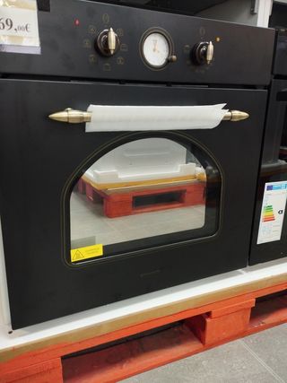 Horno 7 funciones estilo rústico Negro CLASE A Turbo ventilador Capacidad de 56 litros Guías telescópicas desmontables Recubrimiento cerámico interior para una fácil limpieza, 7 modos de coccion , Nuevo totalmente embalado con 3 años de garantía oficial del fabricante Estamos en avenida grecia 36 nave 20 vila- real 600898475