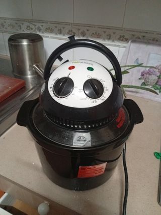 Horno freidora de aire marca Freimatic en buen estado. Es de color negro y tiene un diseño compacto. - Modelo Freimatic. - Control de temperatura y temporizador. - Asa para facilitar el transporte.es de cerámica cabezal para asar
