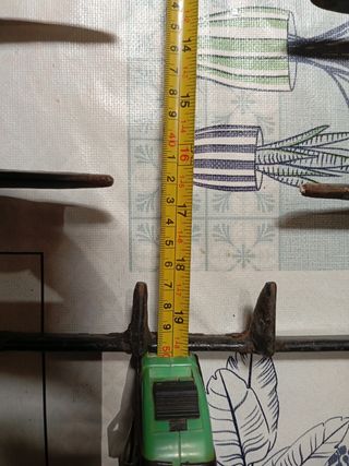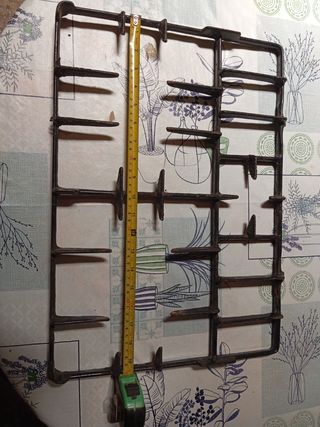 Protector de fuegos de la hornilla de butano. Para 3 fuegos, pequeño arriba, mediano a la izquierda y grande a la derecha. Usado, pero en bastante buen estado. Hierro fundido.