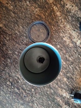 Vendo batidora portátil Juicing Cup, ideal para llevar. Es de color gris azulado y tiene un diseño elegante y compacto. - Capacidad: 380ml - Batería recargable - Fácil de usar - Incluye cable USB