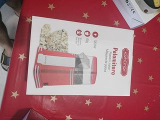 Máquina de palomitas de aire caliente en color rojo. - Diseño compacto y moderno. - Fácil de usar y limpiar. - Incluye tapa transparente. un par de usos, hay que echarle poco ya que saltan