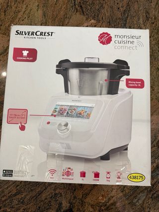 Robot de cocina Silvercrest Monsieur Cuisine Connect, prácticamente nuevo. Ideal para preparar todo tipo de recetas. - Capacidad de la cubeta: 3L - Pantalla táctil de 17cm - Potencia: 1050W - Wifi - Multilingüe
