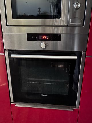 Horno empotrable de la marca Siemens con acabado en acero inoxidable. - Diseño moderno y elegante. - Panel de control digital. - Puerta de cristal. (cristal interior roto) funciona muy bien pero al no encontrar el cristal de repuesto he comprado uno nuevo