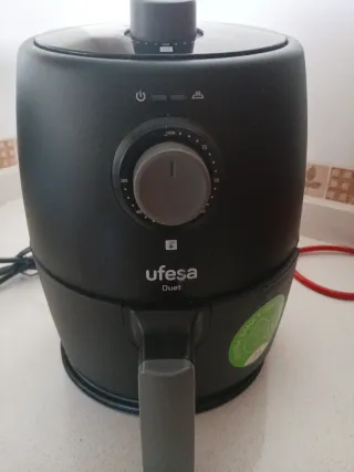Freidora de aire Ufesa Duet en color negro. - Diseño compacto y moderno. - Panel de control con dial. - Indicadores luminosos de funcionamiento.