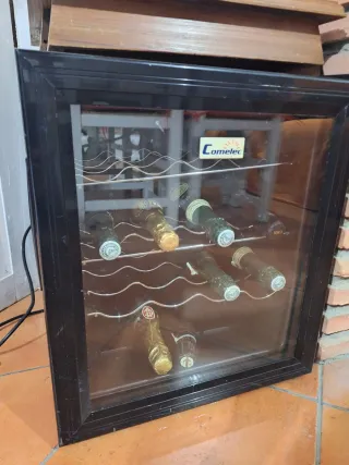 Botellero frigorífico con capacidad para varias botellas. - Diseño moderno y elegante. - Puerta de cristal. - Estantes interiores. - Marca Comelec.