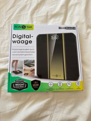 Báscula digital RUN STAR modelo BG2403-B con diseño moderno. - Precisión garantizada por moderno sistema de sensores. - Capacidad de peso: 400LB/180KG. - Pantalla de gran tamaño. - Cristal de seguridad de 6 mm. - Fácil lectura.