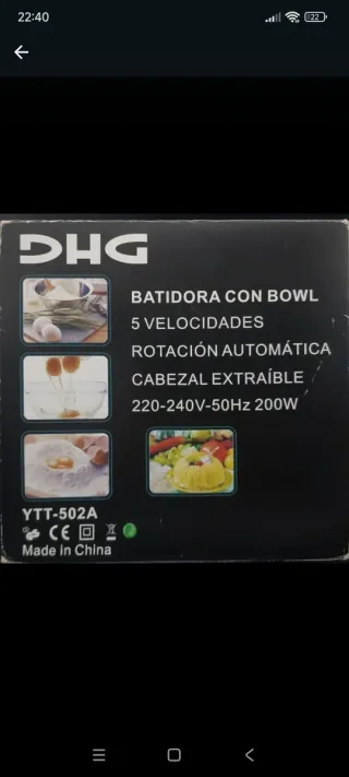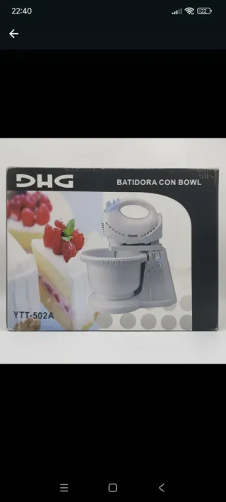 Batidora eléctrica DHG con bowl, modelo YTT-502A. Ideal para preparar postres y mezclas. - Diseño compacto y funcional. - Incluye bowl. - Marca: DHG.