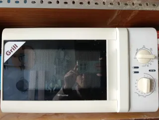 Microondas blanco con función grill. - Diseño compacto y funcional. - Panel de control intuitivo con dos mandos giratorios. - Puerta con ventana para visualizar el interior.