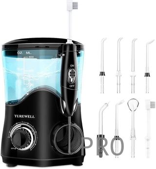 Irrigador dental TUREWELL en color blanco. Incluye 8 boquillas multifuncionales. - Capacidad del depósito: 600ml. - 10 ajustes de presión del agua. - Ideal para la limpieza de dientes.