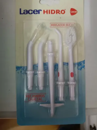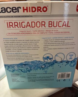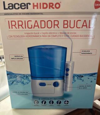 Irrigador bucal Lacer Hidro en buen estado. Nuevo sin estrenar.Incluye el irrigador, el mango y un estuche con varios recambios de cepillos. - Irrigador bucal Lacer Hidro. - Mango con botones. - Estuche con recambios de cepillos Lacer -Sin estrenar