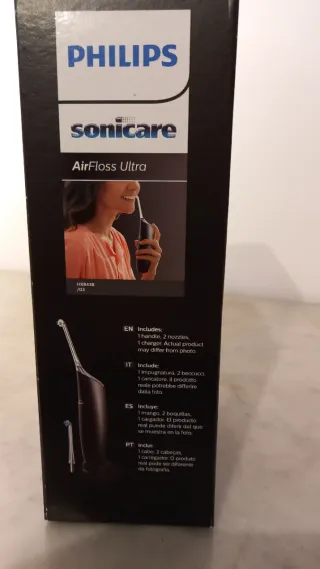 Irrigador bucal Philips Sonicare AirFloss Ultra. - Incluye 1 mango. - Incluye 3 boquillas. - Incluye 1 cargador. Ha tenido poquisimo uso y las 3 boquillas que incluyo son compradas a parte. Por lo tanto nuevas. Todo el dispositivo está en perfectas condiciones. Hay 1 foto donde se ve encendido.En una foto esta la fra. Con el precio original.
