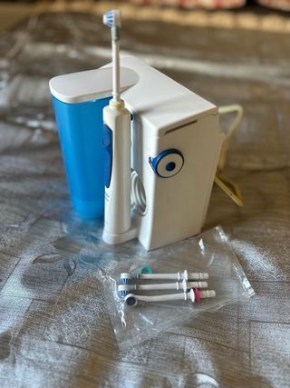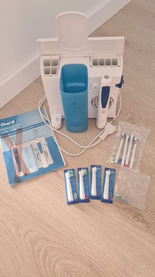 Limpiador bucal Oral-B, con irrigador Braun y 4 cabezales Oxyjet. Solo se ha usado una vez. Está como nuevo