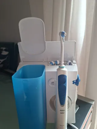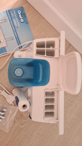 Estación de limpieza profesional Braun OralB Oxyjet professional care. Cepillo eléctrico e irrigador bucal con depósito. Tiene un fallo en la tapa que no afecta al funcionamiento.