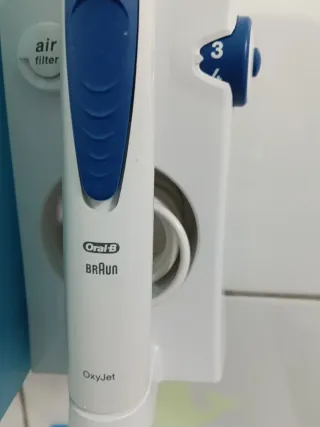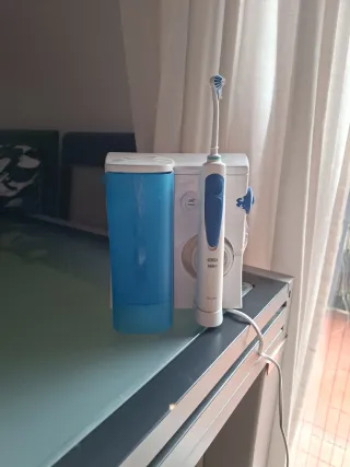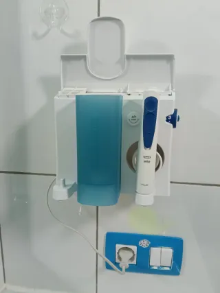 Sistema completo de cuidado bucal que combina un cepillo de dientes recargable y un irrigador bucal. El centro dental incluye tecnología avanzada de microburbujas con la función Oxyjet, la cual enriquece el agua con microburbuja, para mejorar la acción de limpieza. Practicamente nuevo y con muy poco uso, recambios originales a estrenar. Se entrega en portal del propietario en Vitoria-Gasteiz.