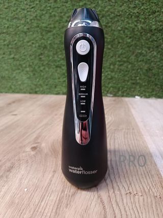 PRECIO ONLINE : 99,99€ ESTADO : COMO NUEVO DEFECTO : NINGUNO LOCALIZACIÓN K - T.P4.E2.F1 COD : 64115 Waterpik Irrigador Dental Eléctrico con 3 Posiciones de Control del Agua a Presión con Cargador USB, Eliminación de Placa Dental óptimo para Viajar y para Baños Pequeños, Negro (WP-582EU)