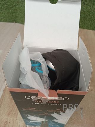 En su caja original. Con 4 accesorios. Con bolsa para llevar de viaje. 3 posiciones de presión. Lo pueden utilizar diferentes personas, sólo has de cambiar el accesorio. Recambios sin problema al ser una marca líder en el sector.