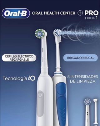 En venta: Oral Health Center Oral-B Pro Serie 1 Sistema completo de higiene dental con cepillo eléctrico + irrigador de agua. Perfecto para una limpieza profunda diaria y para mejorar la salud de las encías. Marca Oral-B, recomendada por dentistas. Estado: En buena condición, funciona perfectamente.