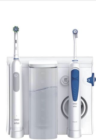 Centro de salud bucal Oral-B. - Incluye irrigador bucal y cepillo eléctrico. - Diseño moderno y compacto.