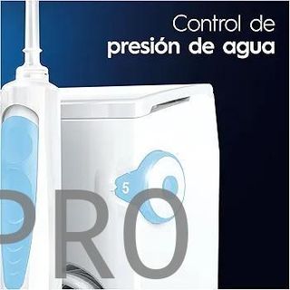 Irrigador bucal Oral-B - Usa un chorro de agua (enriquecida con microburbujas de aire, conocida como tecnología Oxyjet) para limpiar zonas difíciles de alcanzar entre los dientes y alrededor de las encías. - Depósito de agua integrado en el sistema, con regulación de la presión de salida del agua