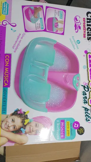 Spa para pies con función de masaje y burbujas, ideal para relajarse. Incluye accesorios. - Funciona con pilas. - Incluye música. - Masaje con burbujas. - Accesorios incluidos.