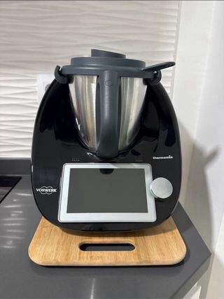 Se vende Thermomix Vorwerk en color negro. Presenta un diseño texturizado y moderno. - Pantalla digital. - Dial plateado. - Base con detalles geométricos.