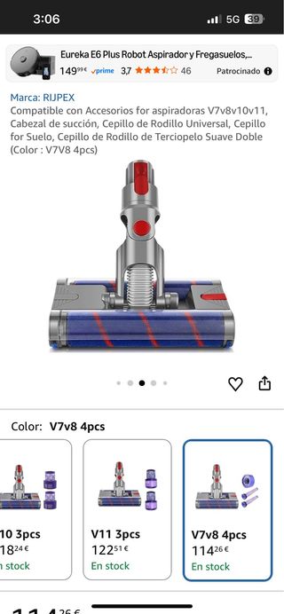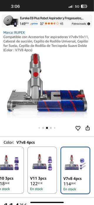 Cabezal de succión compatible con aspiradoras Dyson V7, V8, V10 y V11. Ideal para suelos duros y alfombras. - Incluye cabezal de succión. - Cepillo de rodillo universal. - Cepillo de terciopelo suave doble.