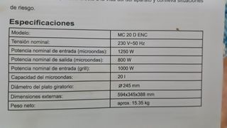 Microondas de la marca Cata. - Interior de acero inoxidable. - Plato giratorio de cristal. - Panel de control digital.