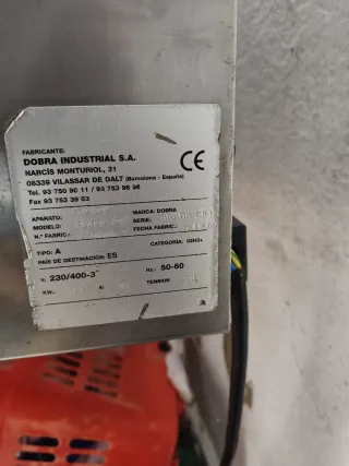Horno industrial marca Dobra, modelo Prado CR3. - Fabricante: Dobra Industrial S.A. - Serie: Brado CR3 - Fecha de fabricación: 18-12-06 - Tipo: A - País de destino: ES - Tensión: 230/400-3 V - Frecuencia: 50-60 Hz - Categoría: II2H3+