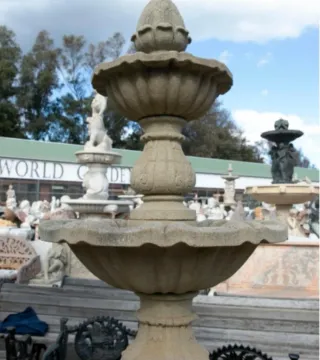 Fuente de agua decorativa de piedra, ideal para jardines o patios. - Diseño de dos niveles. - Acabado en piedra natural!