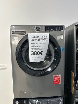 Lavadora de carga frontal Hoover en color negro. - Capacidad de 9 kg. - Velocidad de centrifugado de 1.400 rpm. - Clasificación energética A. - 2 años de garantía oficial.