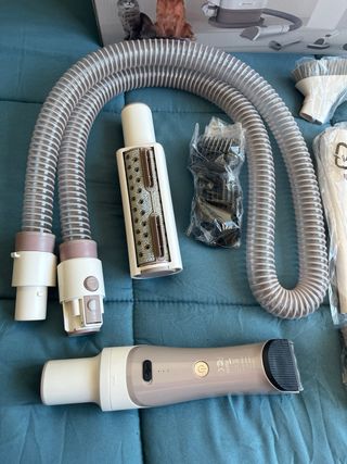 Aspiradora para perros y gatos a ESTRENAR. Incluye todos los accesorios nuevos: - Incluye aspiradora principal. - Manguera flexible. - Cepillo para eliminar pelo. - Accesorio para corte de pelo. - Boquillas de limpieza. - Recipiente para pelo.