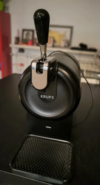 Dispensador de cerveza Krups 2L con acabado negro y detalles cromados. - Diseño elegante y compacto. - Bandeja recogegotas. - Asa ergonómica.