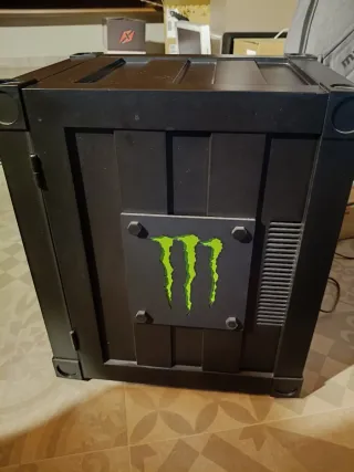 Mini nevera de la marca Monster Energy, ideal para mantener tus bebidas frías. Su diseño compacto la hace perfecta para cualquier espacio. - Puerta transparente. - Logo de Monster Energy en la parte superior y laterales.