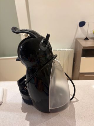 Cafetera Dolce Gusto de color negro. Tiene un diseño moderno y compacto, ideal para tu cocina. - Depósito de agua transparente. - Palanca superior para manejo. Se le sale el agua al deposito al hacerla funcionar. Por eso es barata. Genial si sabes arreglarla o necesitas repuestos