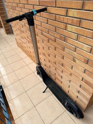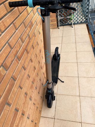 Patinete eléctrico Cecotec Bongo en color marrón. Ideal para desplazamientos urbanos. - Manillar con puños negros y detalles en azul. - Rueda delantera negra. - Plataforma negra con logo. - Freno delantero.