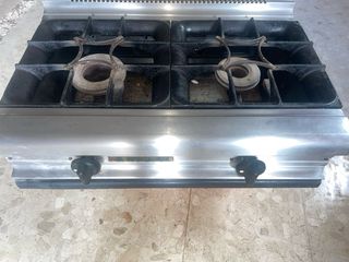 Cocina de gas de dos fuegos fabricada en acero inoxidable. Ideal para hostelería o para quienes buscan un equipo robusto y duradero. - Diseño moderno y funcional. - Superficie de fácil limpieza.