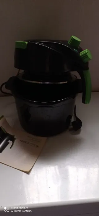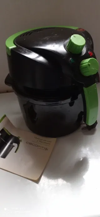 Freidora de aire Cecofry en color negro y verde. Incluye manual de uso y recetas. - Diseño moderno. - Controles intuitivos.