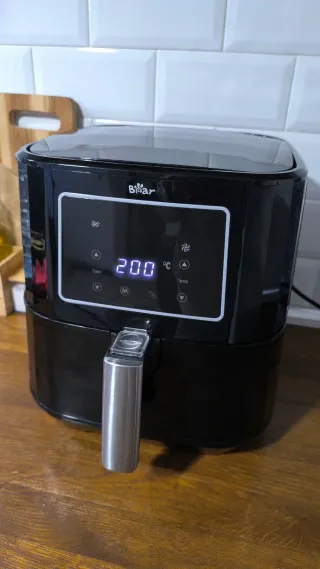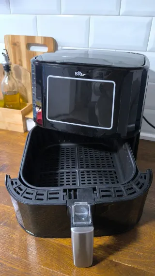 Freidora de aire Bear de 5'5l y 1700W. Cocción más Rápida A+++. NUEVA, solo probada. Panel de Control Digital Táctil. 7 programas de cocción según el alimento, temporizador y temperatura seleccionable. Cestillo extra grande. Instrucciones y embalaje original. Ancho: 30 cm, Fondo: 38 cm, Alto 40 cms. SOLO ENVIO por Correos a través de Wallapop