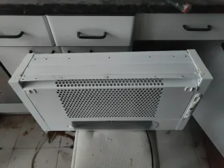 Campana de extracción de cocina en color blanco. - Diseño metálico. - Rejilla perforada.