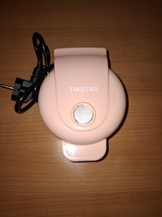 Mini gofrera de la marca Tiastar. Es de color rosa y tiene un diseño compacto. - Ideal para hacer gofres pequeños individuales. - Permite crear tus propias recetas. - Perfecta para una o dos personas. - Superficie de cocción antiadherente. - Fácil de limpiar. - Instrucciones en español. Incorpora también recetas en español. - En su embalaje original.