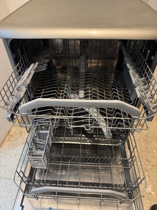 Lavavajillas de la marca Balay en color blanco. Necesita una reparación, en ocasiones no desagua bien, pero no tiene golpes ni piezas rotas (por dentro no lo sé). Creo que con el equipo adecuado y sabiendo es una reparación muy sencilla