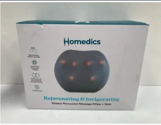 Almohada de masaje Homedics para cuello y espalda. Ofrece masaje Shiatsu y percusión con calor. - Masaje Shiatsu rejuvenecedor. - Masaje de percusión vigorizante. - Ajustes de masaje en sentido horario y antihorario. - Calor relajante. - Diseño ergonómico. - Dos modos de masaje: shiatsu y percusión. - Función de calor opcional. - Panel de control integrado.