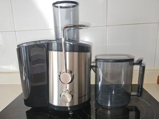 Exprimidor de cítricos Sytech SY-EX17, de acero inoxidable. Está en su caja original y es nuevo a estrenar - Modelo: SY-EX17 - Marca: Sytech - Material: Acero inoxidable. -Acabado Antihuellas - Sistema antigoteo - Salida de zumo directa -Motor silencioso de larga duración - Potencia: 85 W - Filtro para la pulpa - Desmontable para una limpieza fácil - Alimentación : 220-240 -50Hz El exprimidor es nuevo a estrenar.