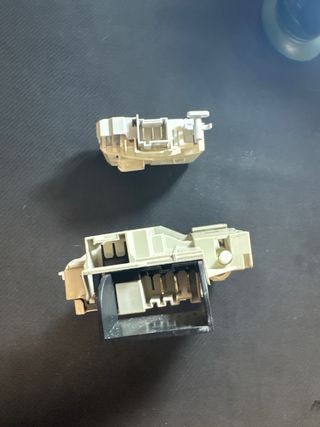 Cierre de puerta para lavadoras de las marcas Whirlpool y Ariston. Pieza de recambio. - Mecanismo de cierre. - Componente de plástico y metal.