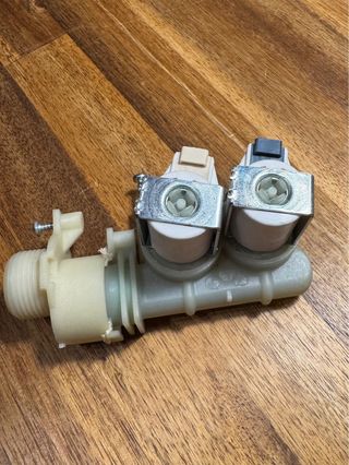 Electroválvula doble de entrada para lavadora de la marca ARISTON. Pieza de repuesto. - Doble entrada de agua. - Conexiones eléctricas. - Material plástico y metal.