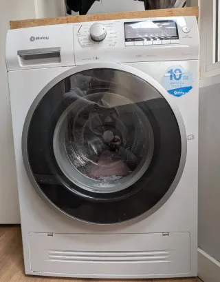 Lavadora y secadora Balay en muy buen estado, con capacidad de lavado de 7kg y secado de 4kg. Viene con el nuevo sistema de secado de Balay, que estropea menos la ropa que las secadoras convencionales. Tiene varios modos de secado. Permite programar directamente el lavado y el secado a continuación. Es muy silenciosa. Funciona perfectamente y nunca ha tenido ninguna avería. El motor tiene garantía de 10 años (la lavadora se compró hace 6). Recogida a cargo del comprador en el barrio de Casablanca.