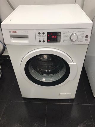 Lavadora de carga frontal Bosch Serie 6 VarioPerfect. - Capacidad de 8 kg. - Tecnología EcoSilence Drive. - Programas: Algodón, Sintéticos, Lana, Rápido 15/30 min, Cortinas, Delicado/Seda, Limpieza Tambor. - Pantalla digital con programas y estado. Al centrifugar se sacude bastante, pero poniendole un buen peso encima se aguanta. Esta en un tercer piso, NO ayudo a bajarla.
