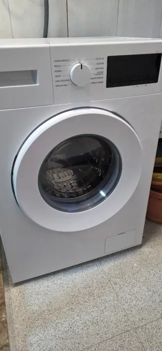 Lavadora de carga frontal con capacidad de 7kg. Comprada hace 7 meses. - Color blanco. - Panel de control con selector de programas y pantalla digital.