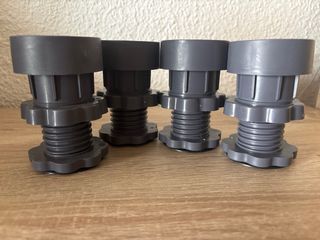 Set de cuatro soportes y alzadores universales para lavadora o lavavajillas. Diseñados para elevar el electrodoméstico y facilitar la limpieza. - Material: Plástico resistente. - Color: Gris oscuro. - Compatibles con la mayoría de lavadoras y lavavajillas. Se ha usado solo una vez para probarlo.