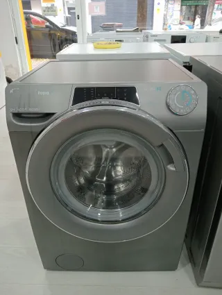Lavadora Candy de carga frontal con capacidad de 9kg. Diseño moderno en color gris. - Panel de control digital. - Programas de lavado variados. - Función de inicio diferido.